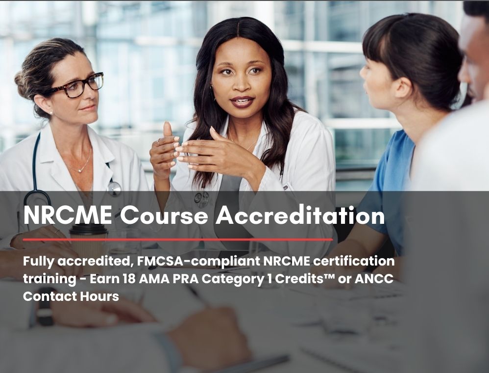 Fully accredited, FMCSA-compliant NRCME certification training – Earn 18 AMA PRA Category 1 Credits™ or ANCC Contact Hours